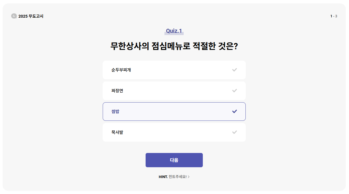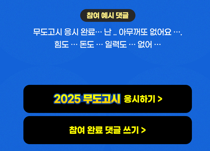 2. 페이지 중간에 2025 무도고시 응시하기 버튼 클릭